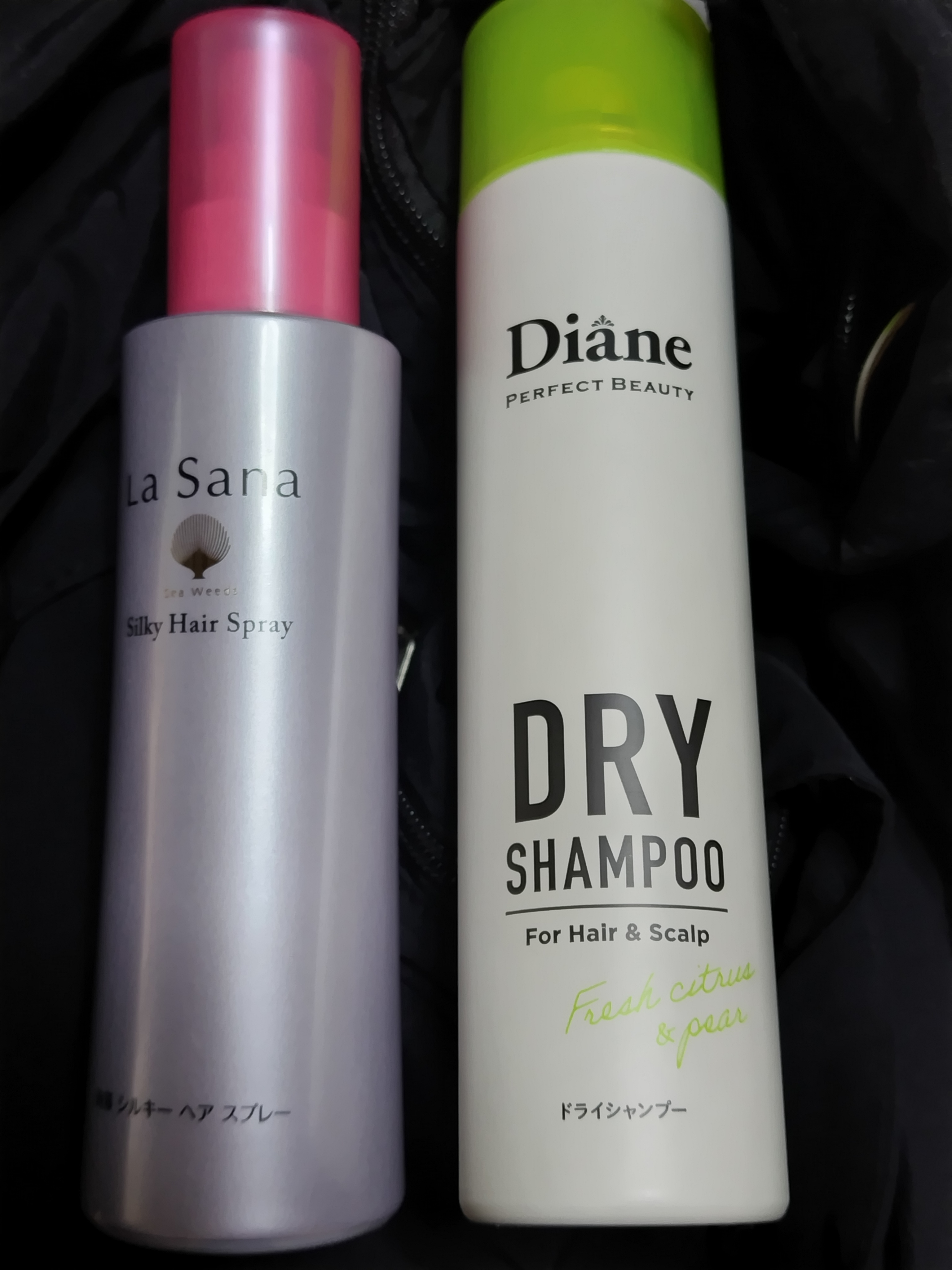 湿気で髪が爆発ゆるいストパーをかけました。そしてこの朝ラサーナのスプレーをかけるとストンとまとまります。頭皮の匂いが気になる季節はこのダイアンのスプレー✨