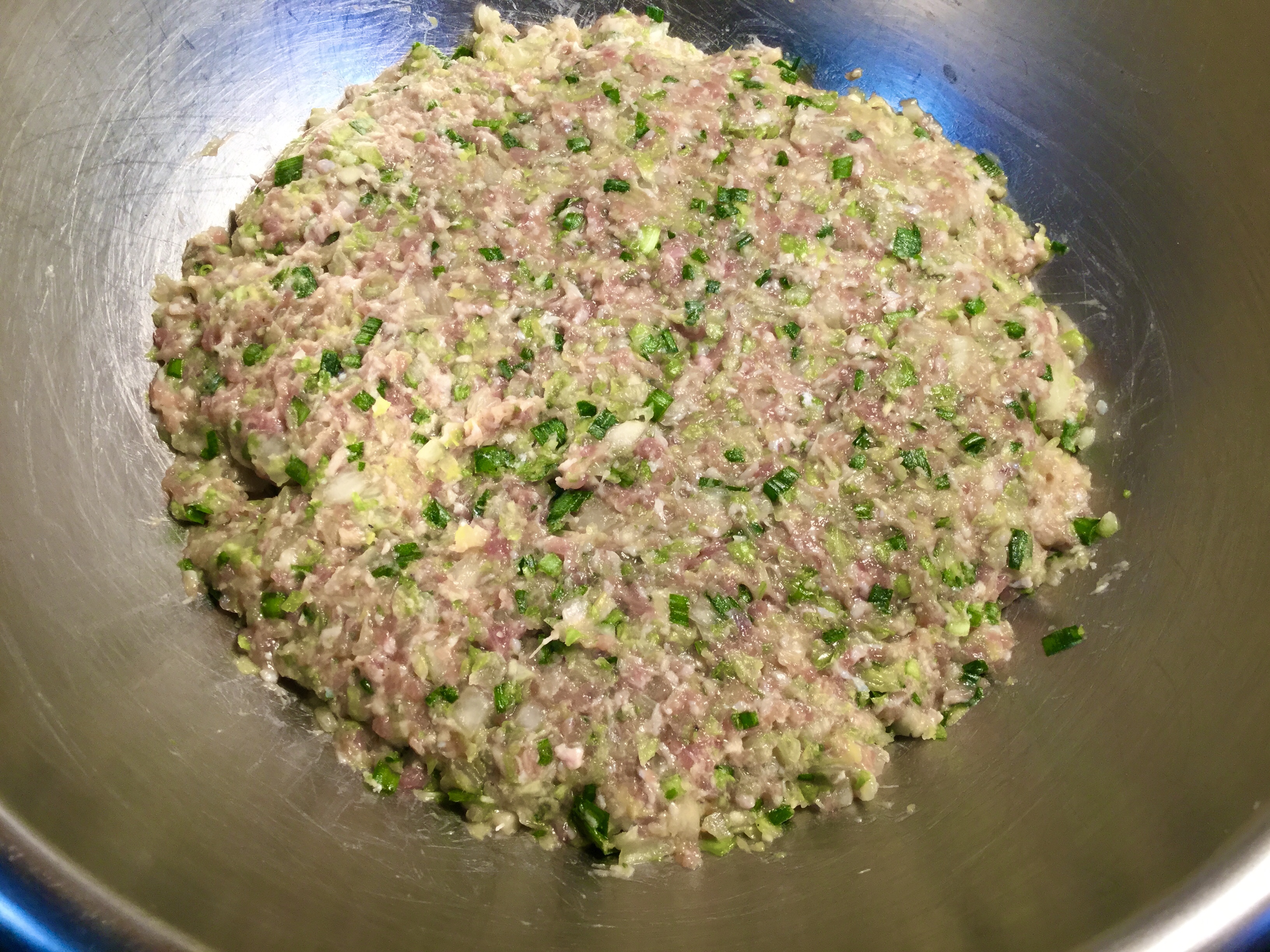 材料は、豚ひき肉、キャベツ、ニラ、生姜