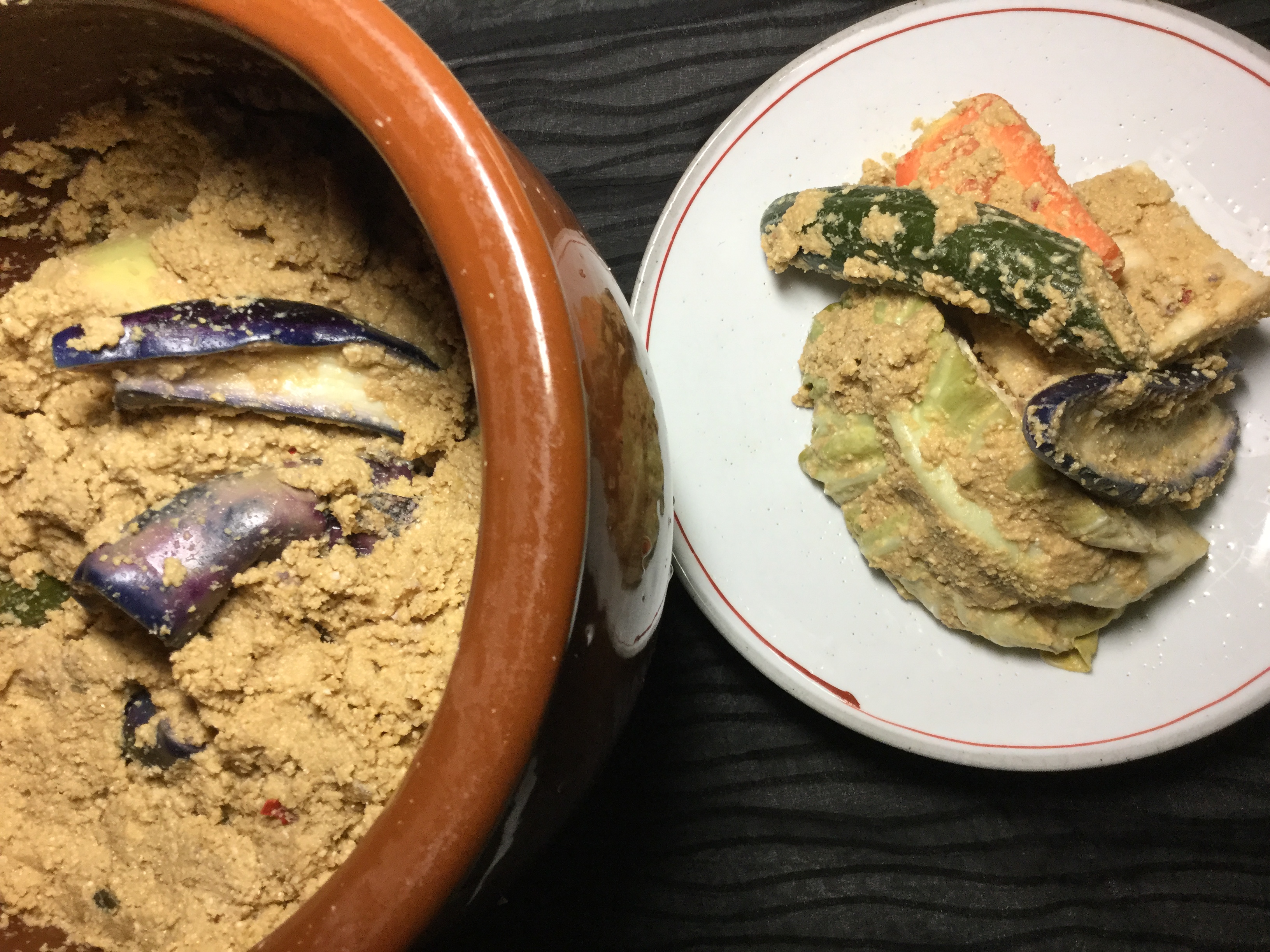 ぬかと塩と水を練って、発酵させたぬか床
