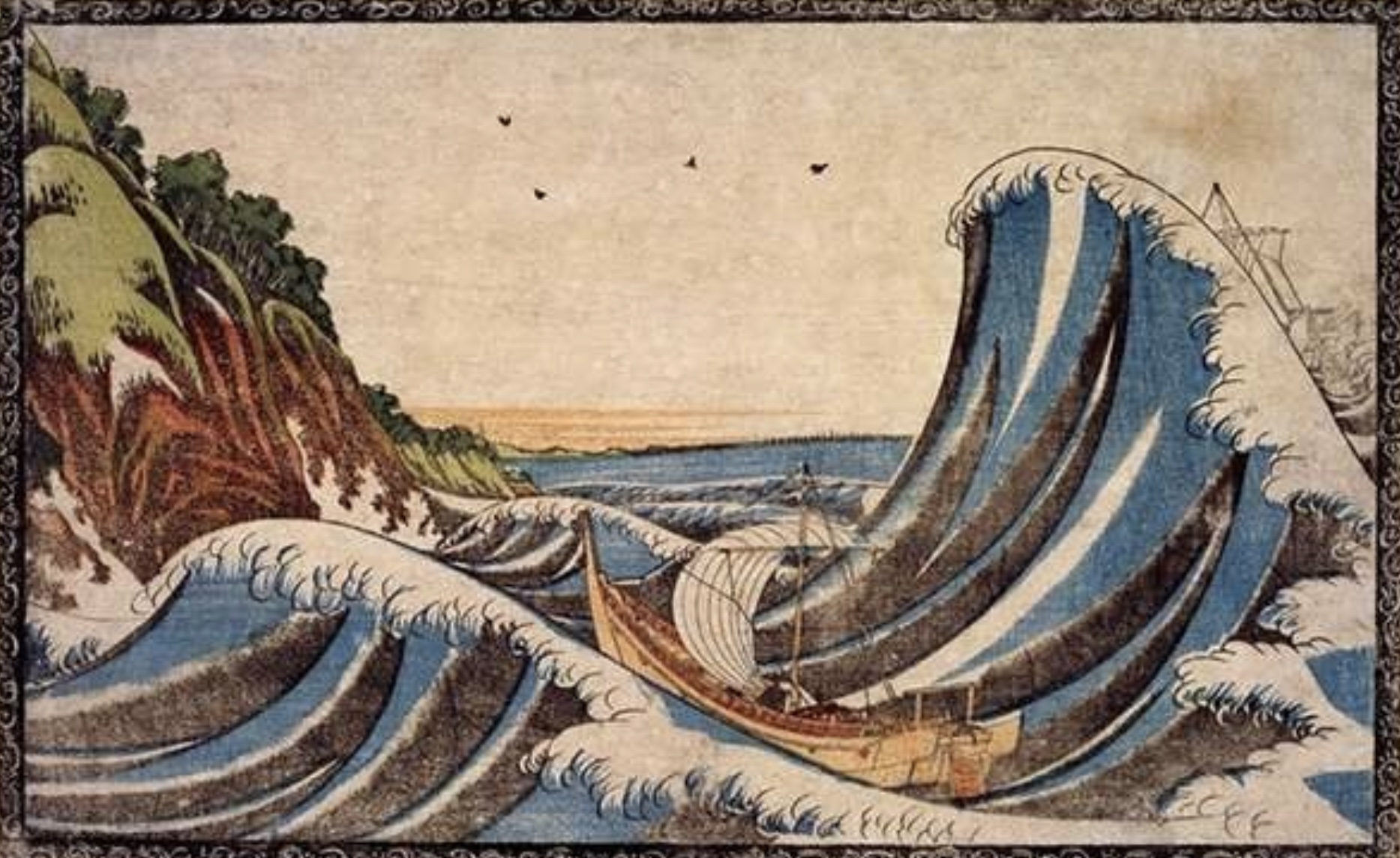 2) 1804年45歳頃。波は大きく立ち上がり