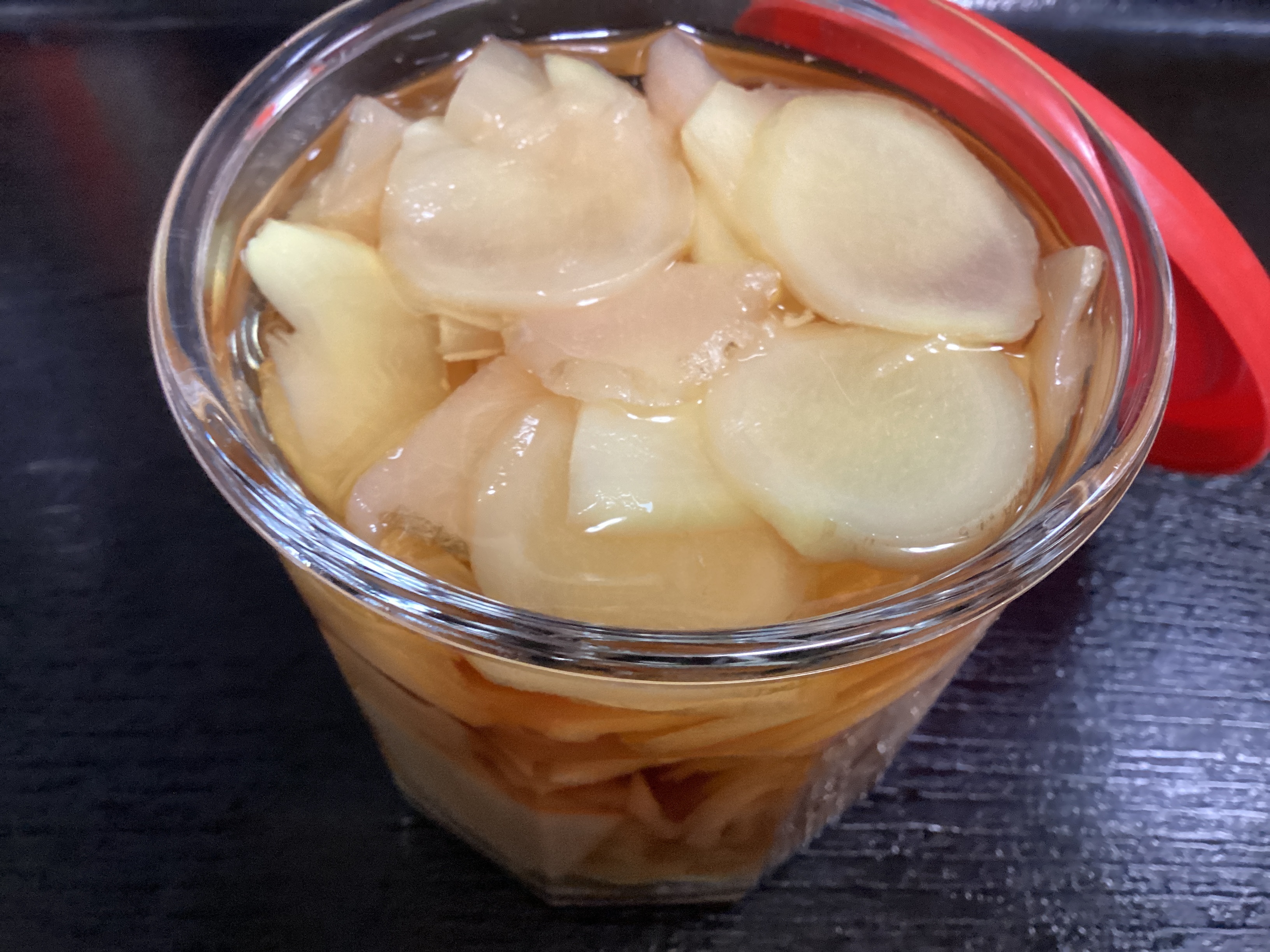 熱湯殺菌した容器に、生姜、甘酢(酢、塩、砂糖)