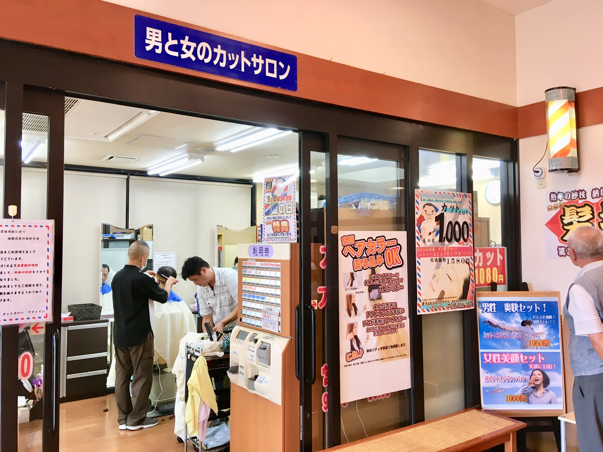 そこのカットサロン・コーナーに理容師の