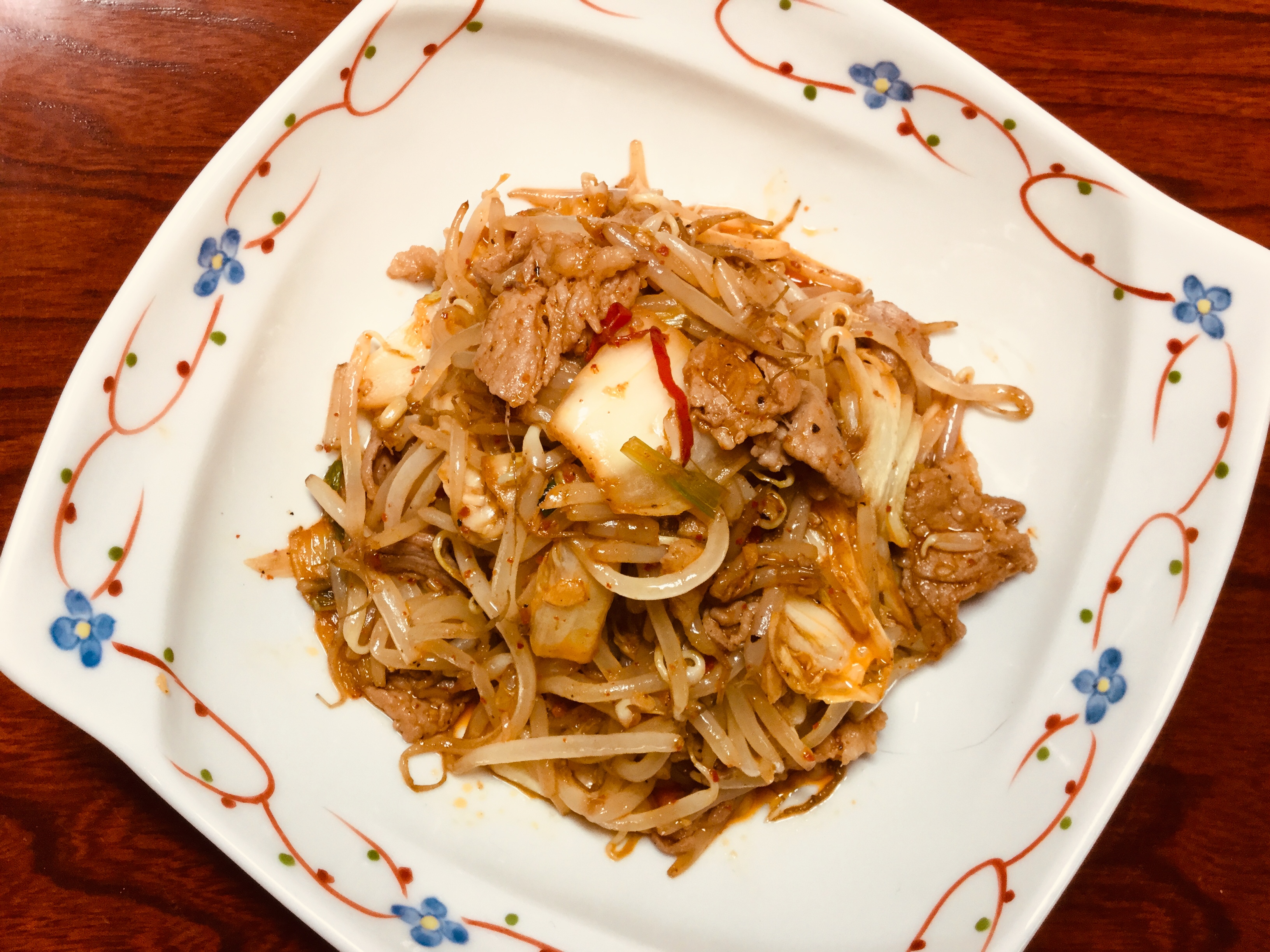 4、豚バラ肉ともやしと白菜キムチを炒めた