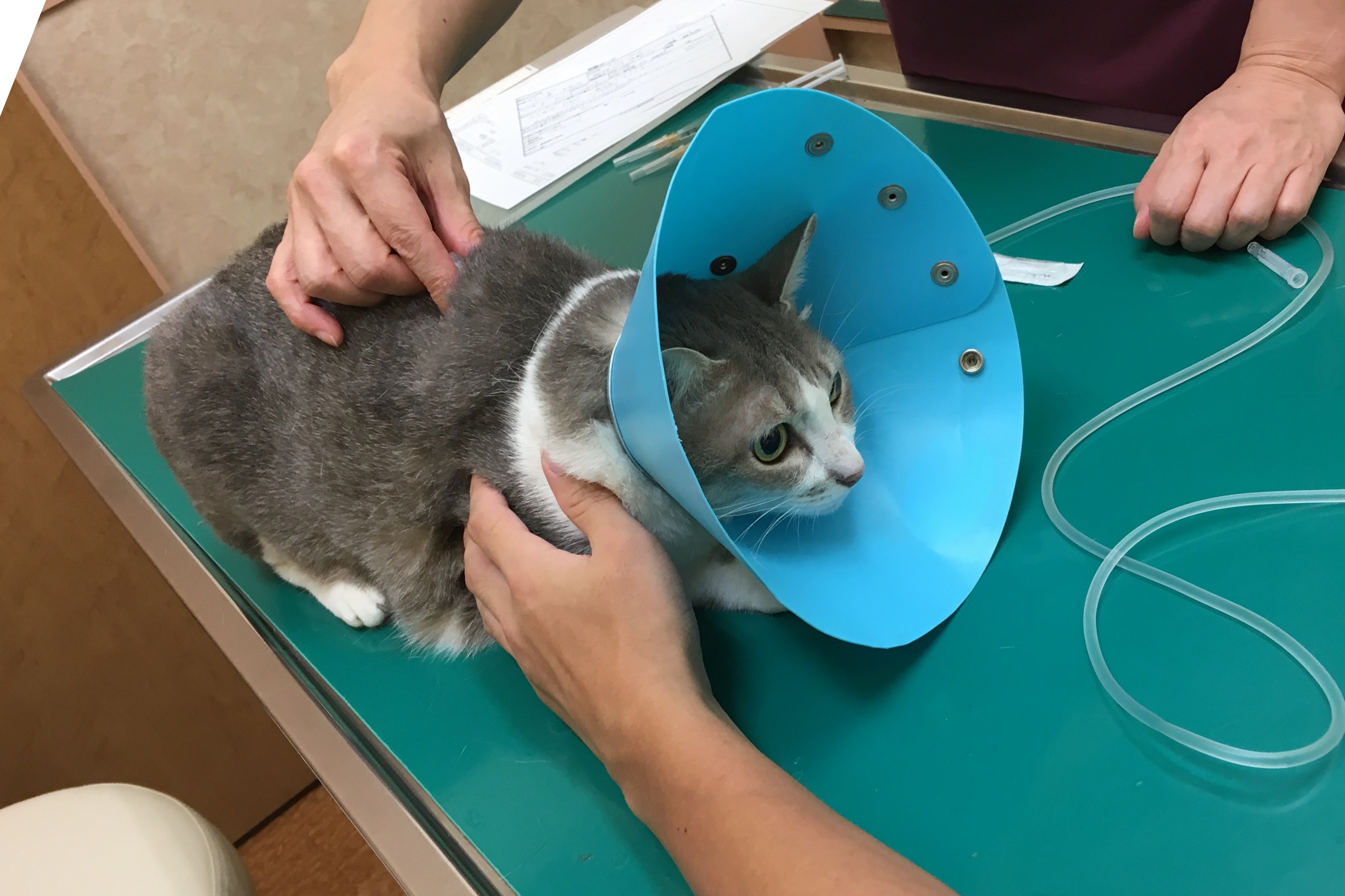 皮下補液(水分補給)と皮下注射(抗生剤)処置