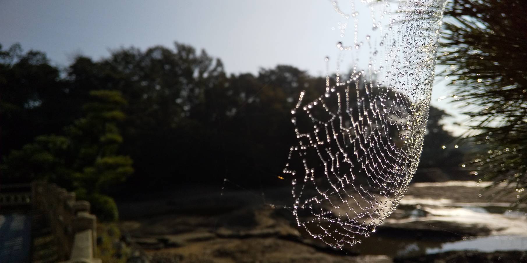 『蜘蛛の巣』は、朝露が凍り、キラキラ光って