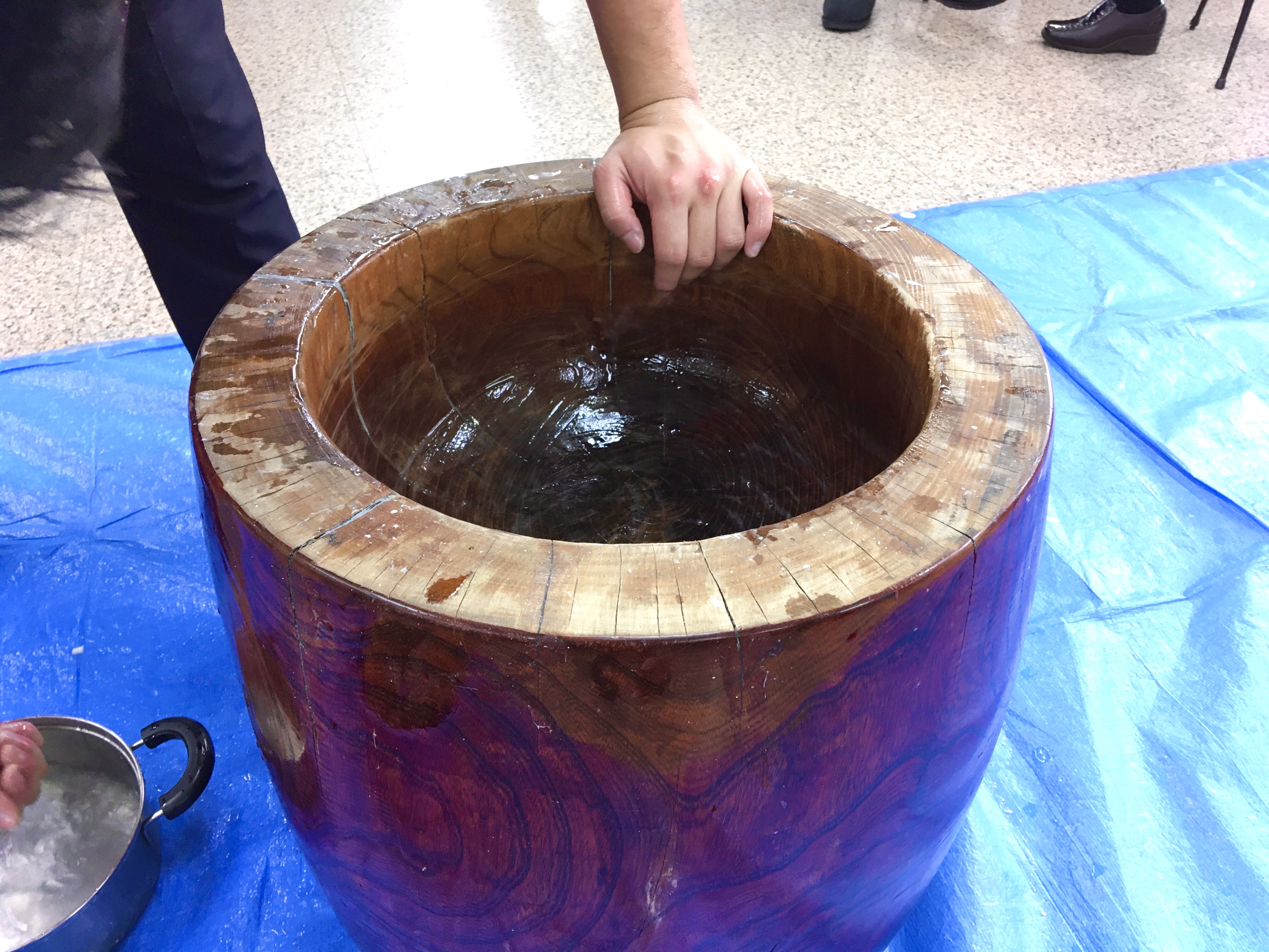 さて、重厚な臼で、店長やスタッフらが新春