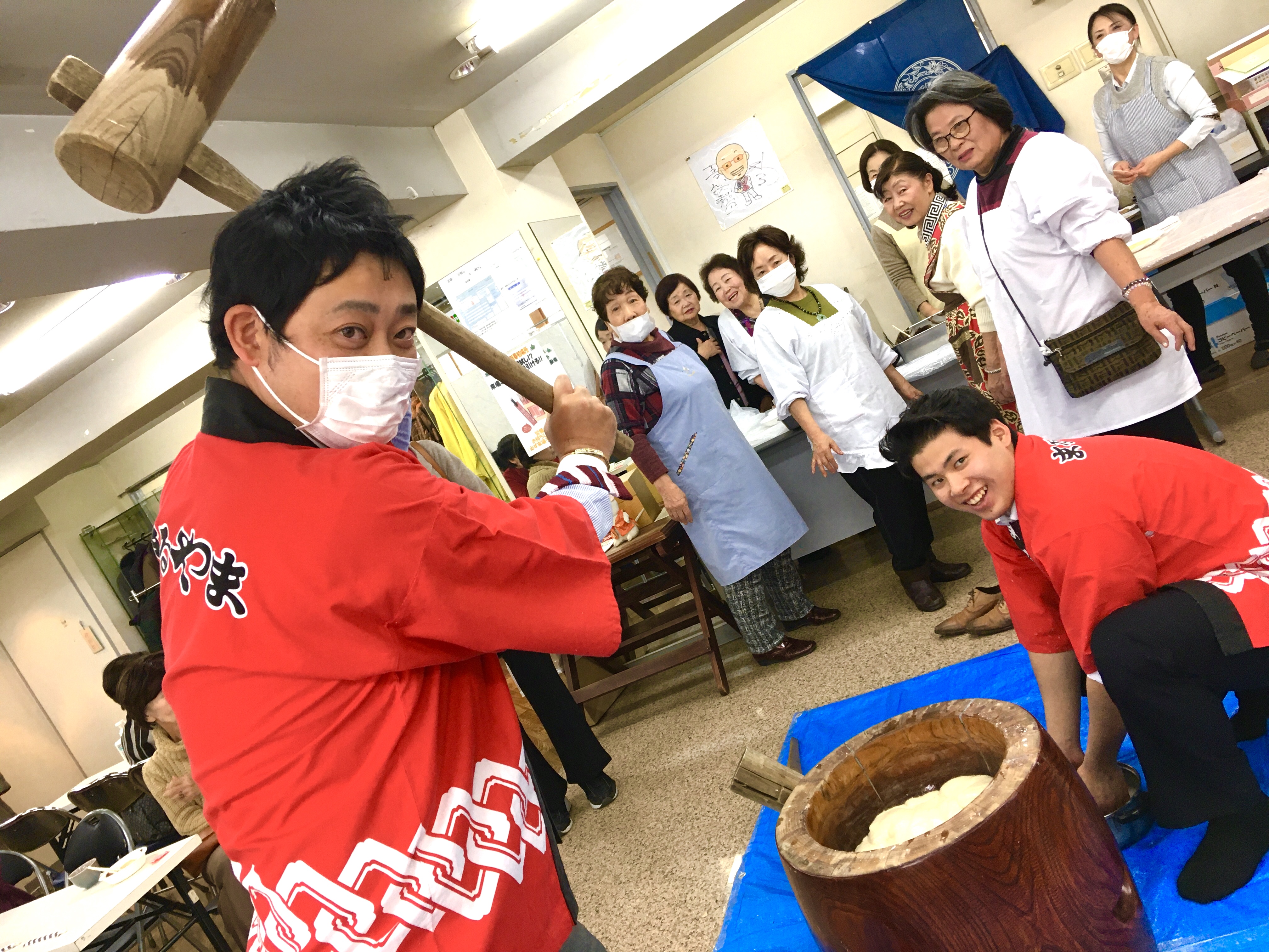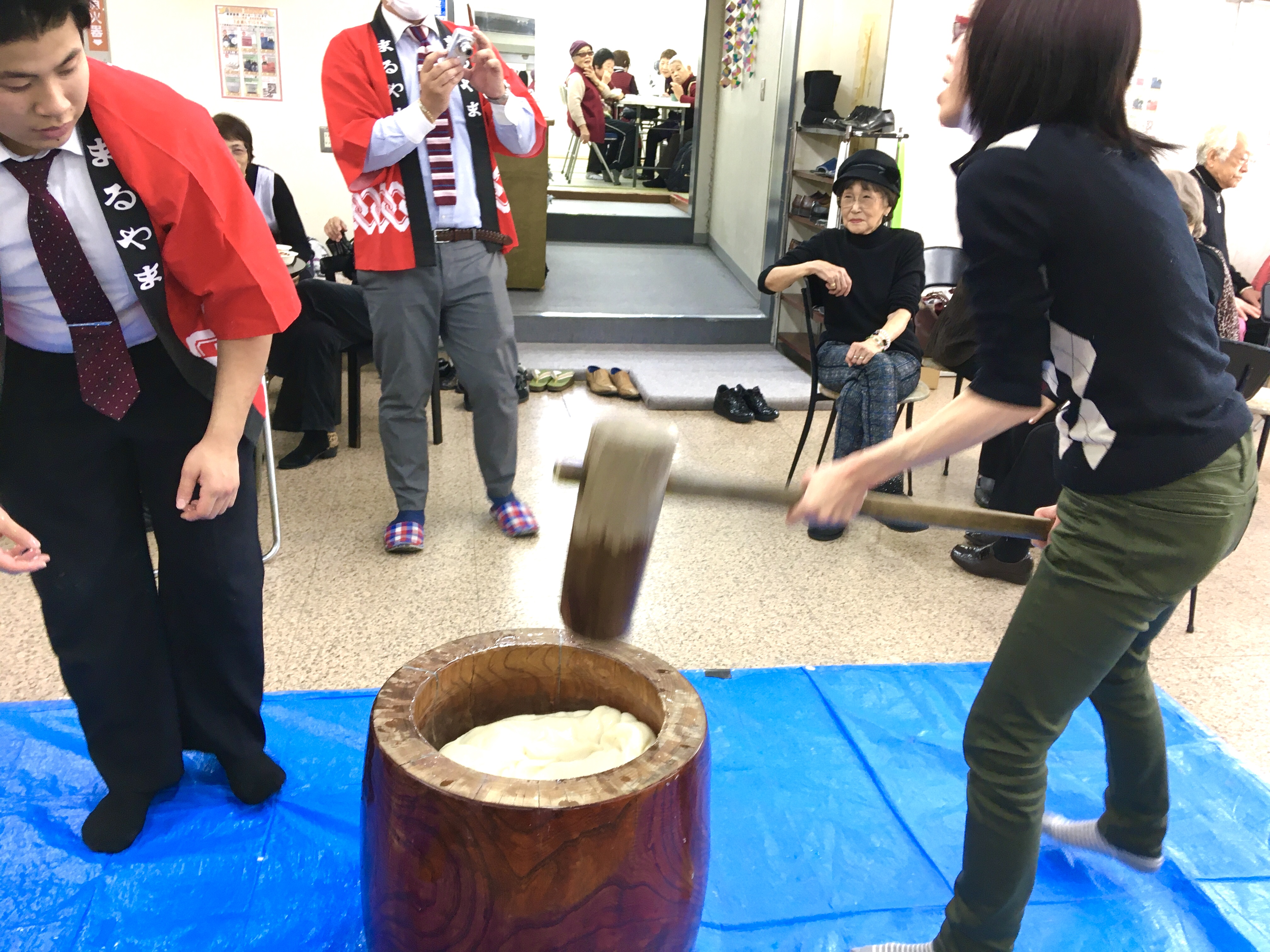 伝統的行事の『餅つき』を、皆さん楽しんで